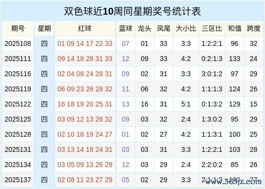 上周星期四的蓝球号码开出05,近十周星期四的蓝球奖号四区比为2:2:5:1,本期臆想开出4区蓝球:16;